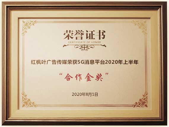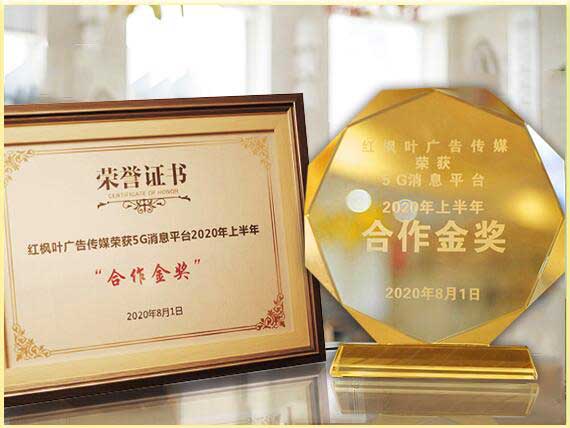 2020年度紅楓葉廣告?zhèn)髅綐s獲5G消息平臺(tái)2020年上半年“合作金獎(jiǎng)”